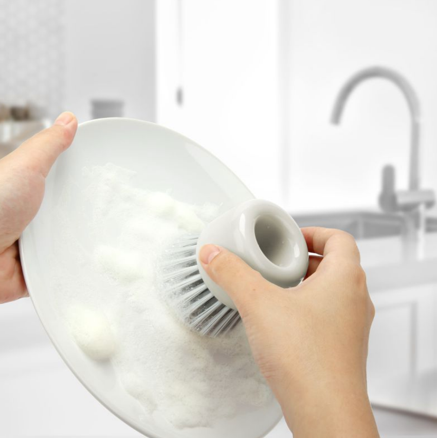 - Durable nylon bristles are safe for non-stick surfaces.