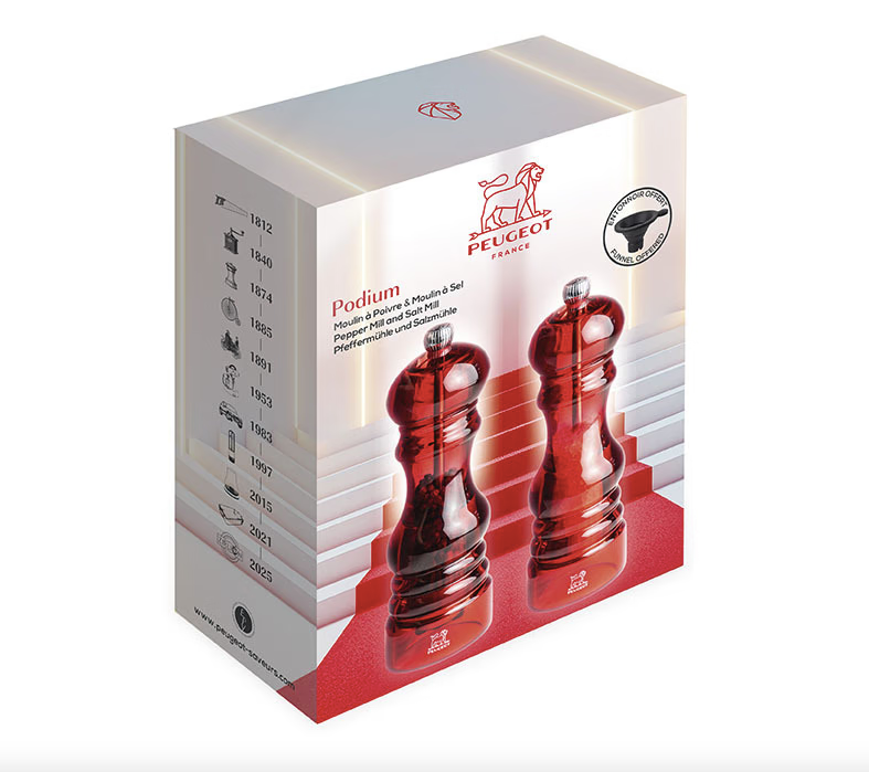 Paris Duo Podium Red Pepper Mill and Salt Mill 18 cm