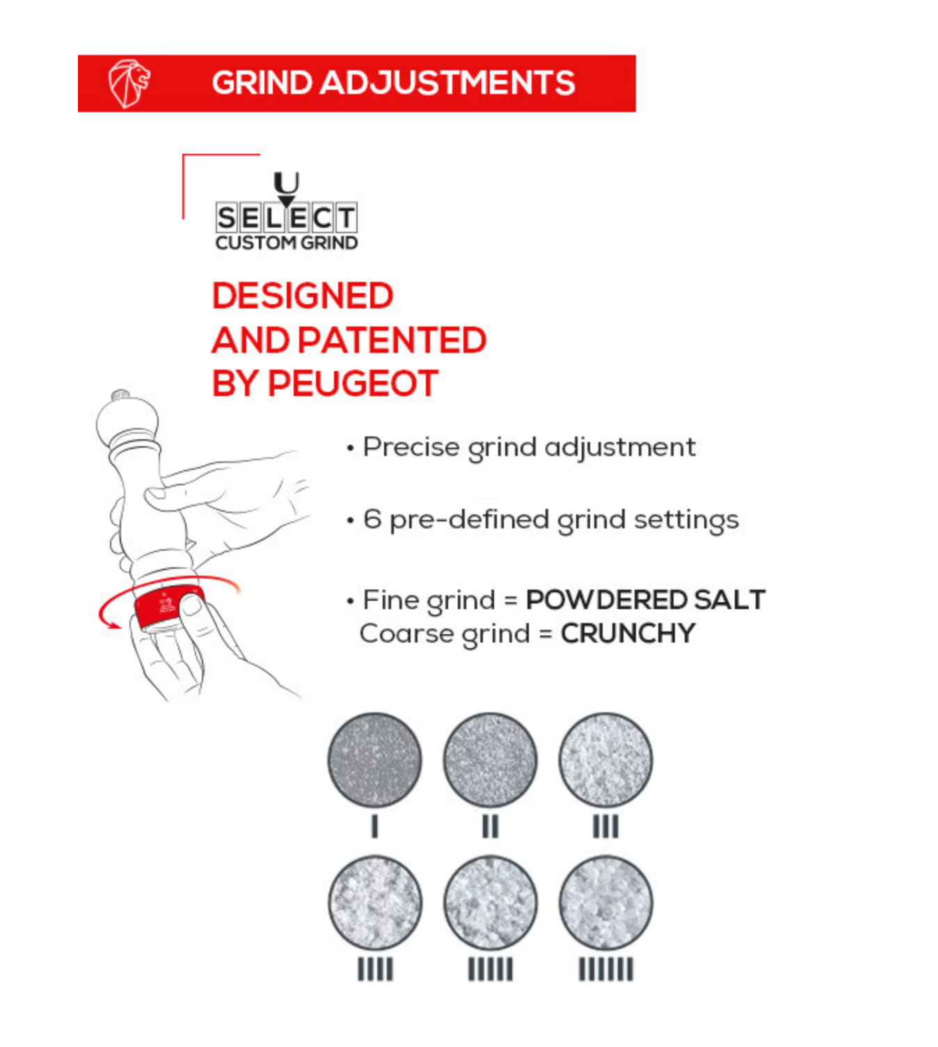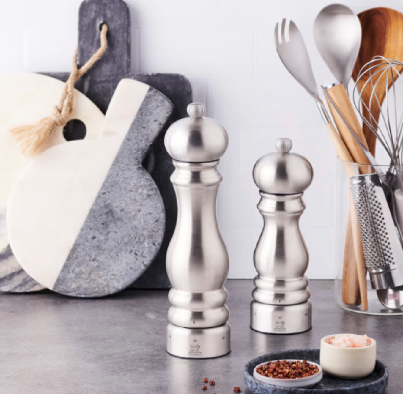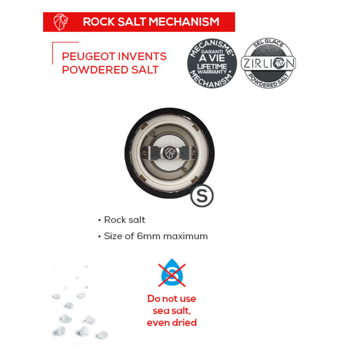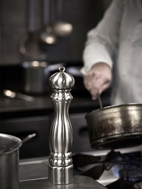 Paris Chef is a collection that provides the Paris mill, the most emblematic of the mills in the Peugeot range, in a full stainless steel finish. The stainless steel used in the design of the Paris Chef 18 cm salt mill is of very high quality and provides perfect strength and longevity. This salt mill is also equipped with the u’Select system, for easier grinding control. All you need to do is to turn the ring at the base of the mill to select the required salt coarseness. Its steel salt grinding mechanism comes with a lifetime guarantee. A mill that you will therefore be able to keep for many years and use all the time.