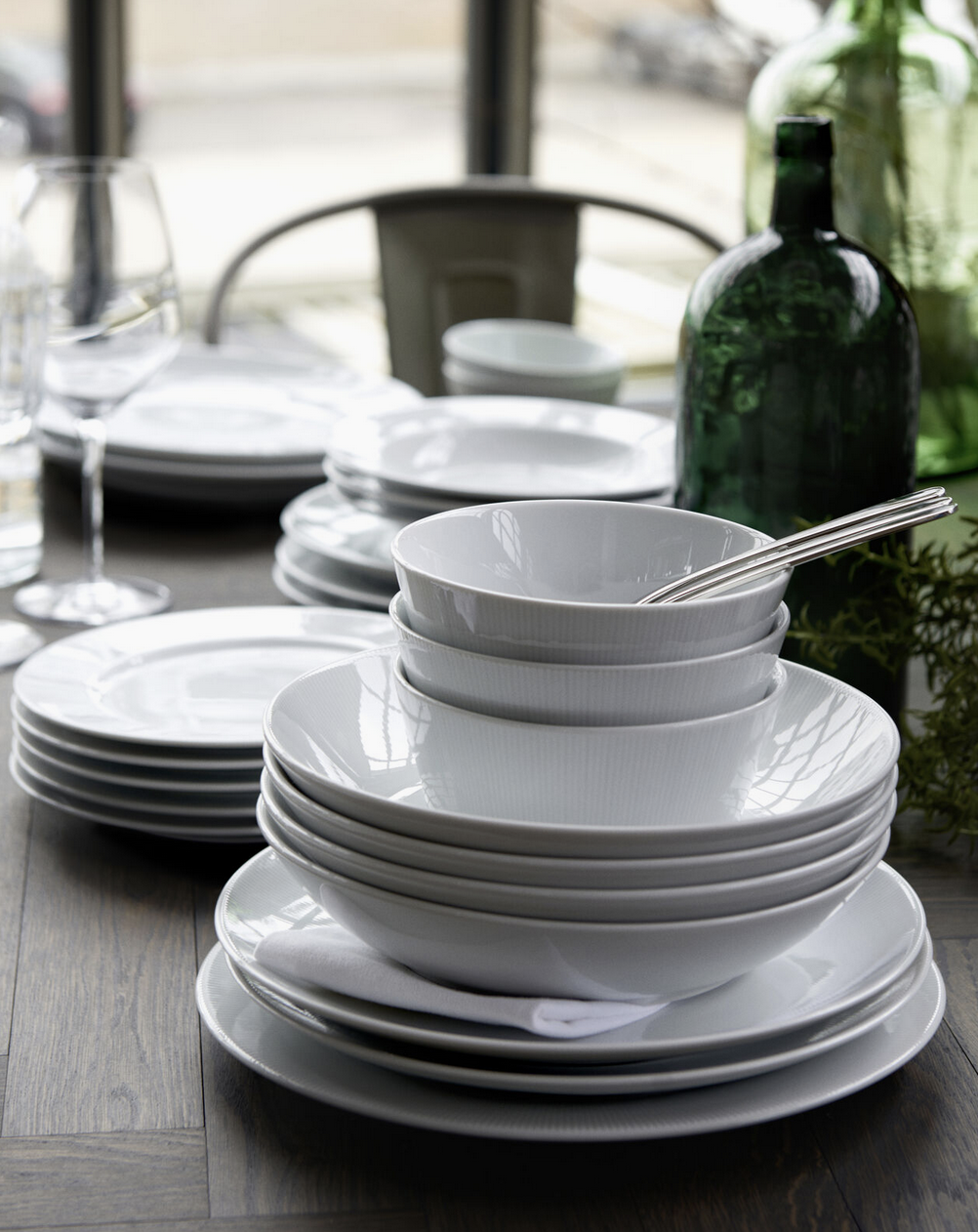 Inspired by the world of Haute Couture, this meticulously crafted collection is embossed with a soft pinstripe design and offers a comprehensive assortment of dinnerware tailored to meet all your needs.
