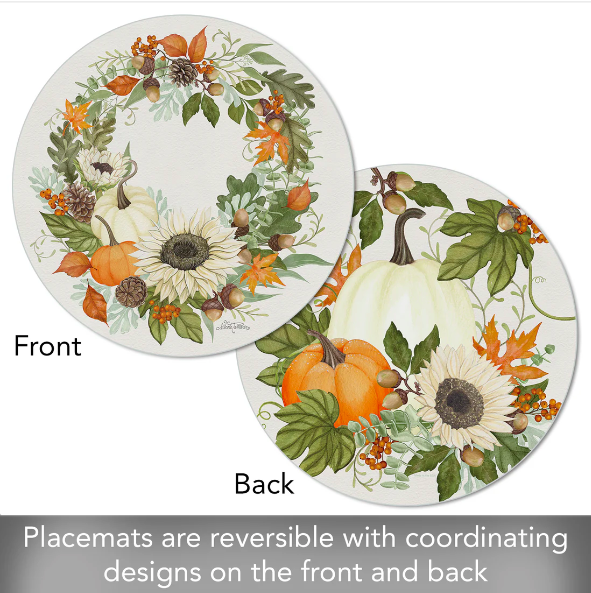 REVERSIBLE-Placemats are reversible, featuring different coordinating designs on both the front and back of each mat. Attractive coordinating designs are great for everyday meals, parties and outdoor entertaining.