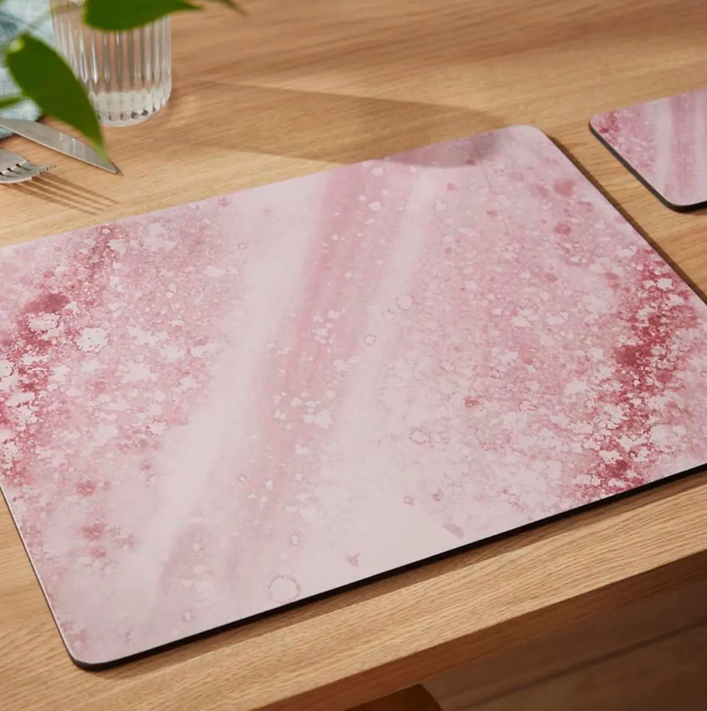 Enjoy refined dining with this elegant set of four Portmeirion Minerals Rose Quartz placemats. A soft and stylish design inspired by the natural beauty of rose quartz, this stunning set is perfect for dinner parties and looks exquisite when paired with a matching set of medium Rose Quartz placemats or coasters. Each piece is made from the finest quality 5mm board, expertly sealed for stain and heat resistance up to 100oC and backed with hardwearing cork to protect your dining table. If you’re searching for a chic birthday gift for a special friend, look no further.