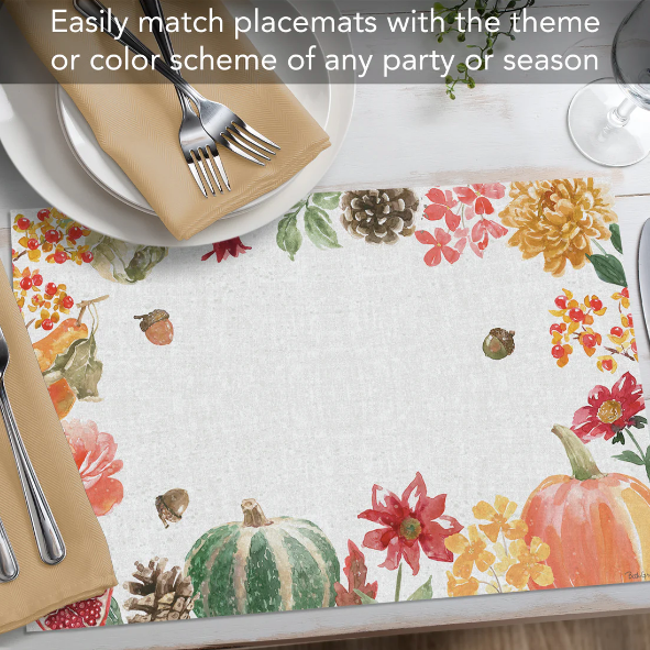 ART AT HOME OR ON THE GO - Beautiful designs add colour and flair to your dining experience. Whether in the dining room, outdoors, or anywhere you want to add finishing touches to your dining space. These Placemats are a great way to decorate for Birthday Parties, Anniversary Parties, or Thanksgiving.