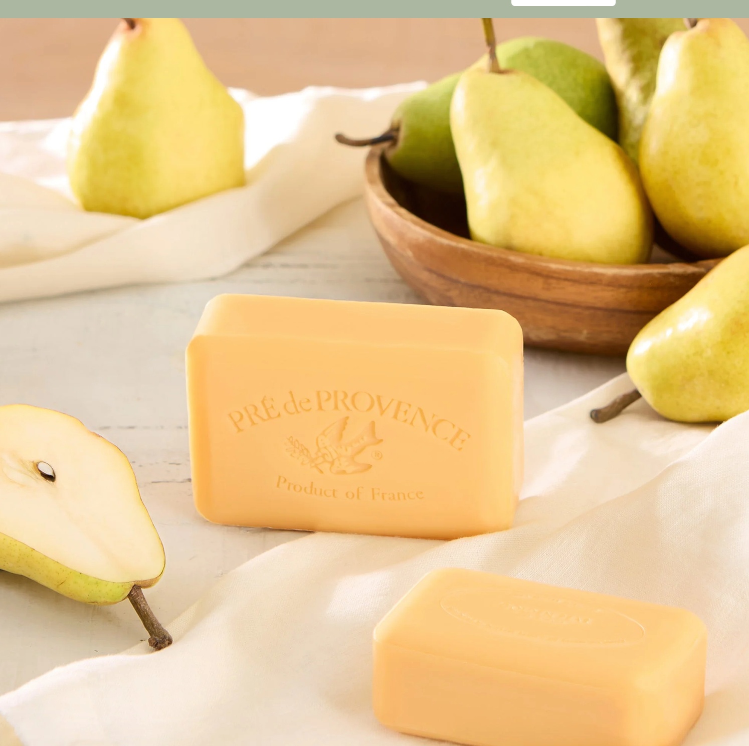 Pré© de Provence Soap Shea Enriched Everyday French Soap Bar - Golden Pear captures the sweetness of ripe fruit with juicy pear and apple, softened by peach and lily of the valley, and grounded in warm notes of almond, musk, and wood. Read more