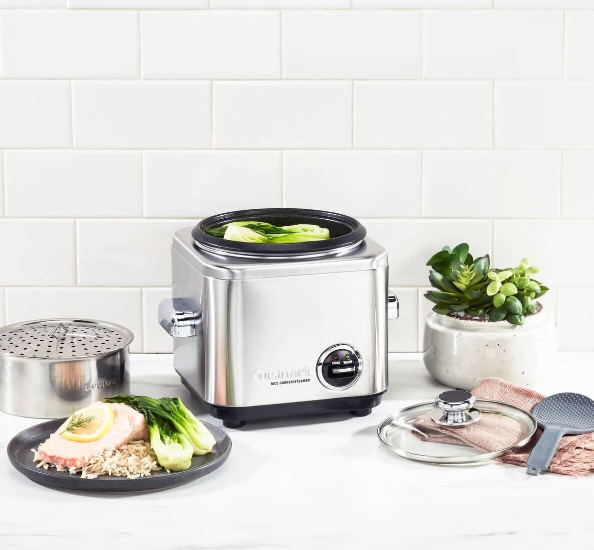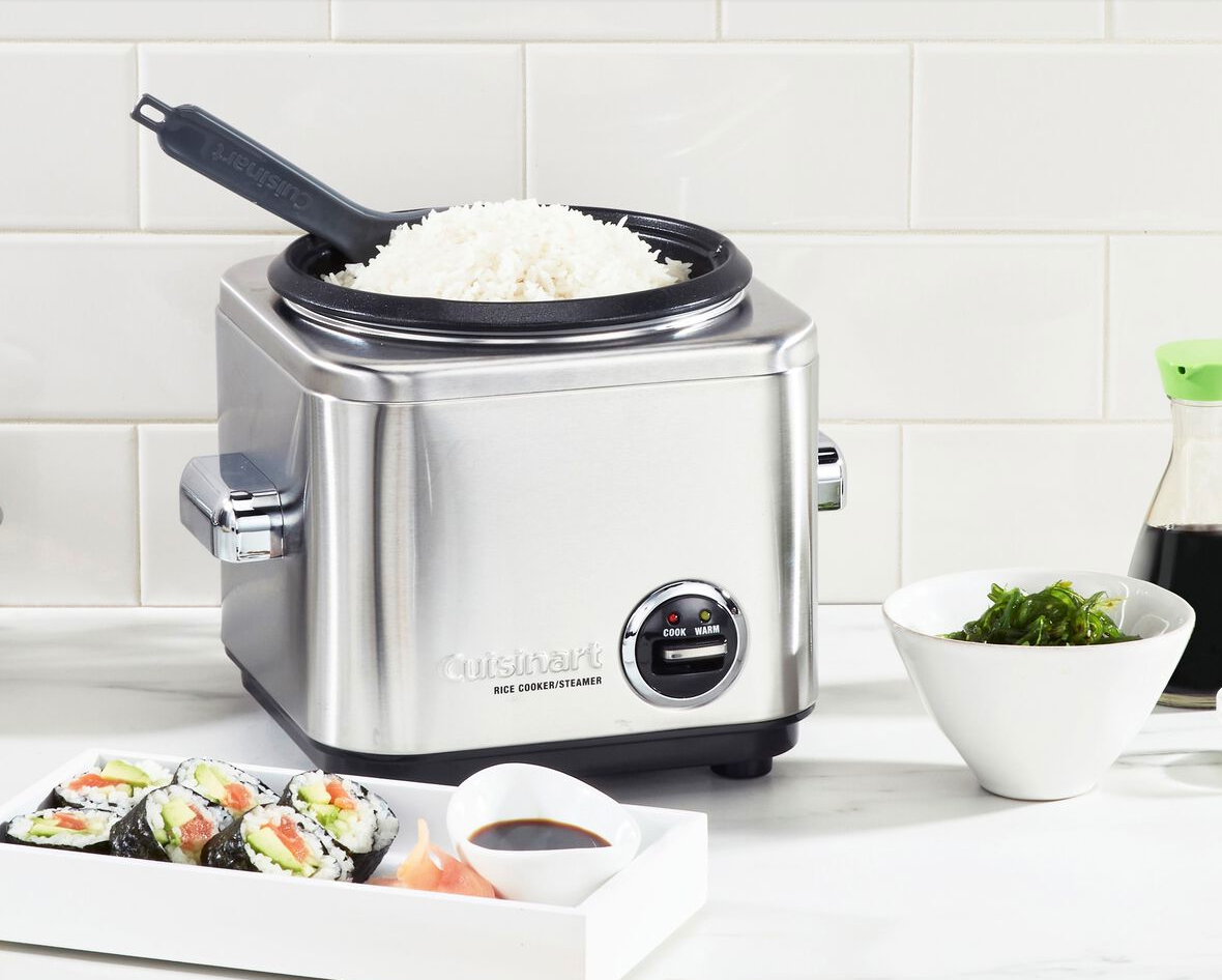 Now making the perfect rice dish is easy with the new brushed stainless Cuisinart Rice Cooker. Its steam vent helps to prevent splattering, while its chrome-plated handles stay cool to the touch. Use the built-in tray to steam other foods while the rice i Read more