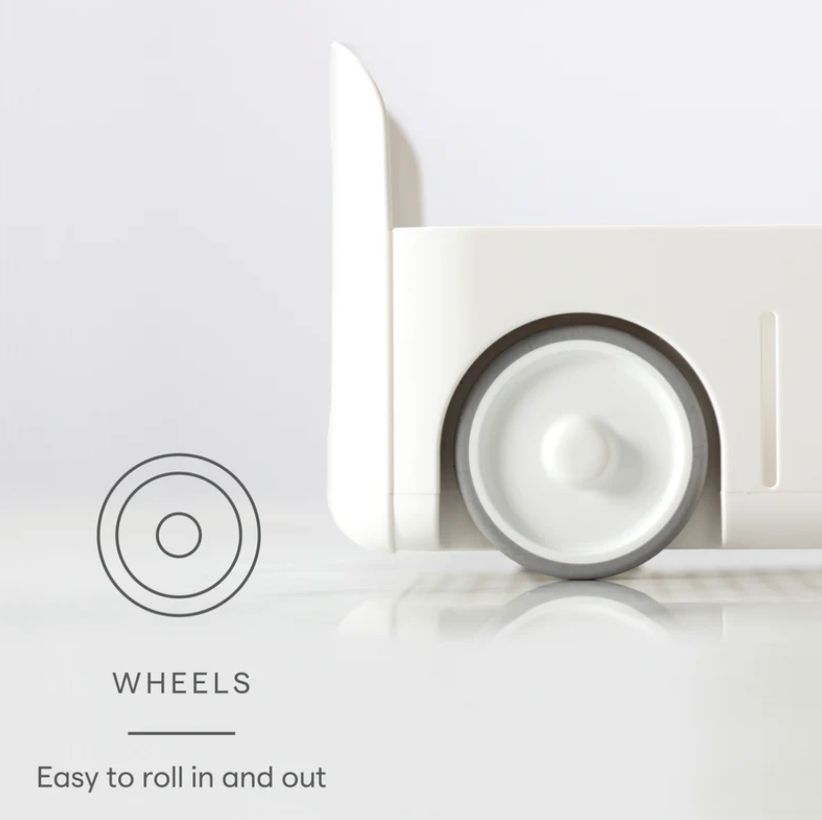 - Large, smooth-spinning wheels roll softly while protecting cabinet floors