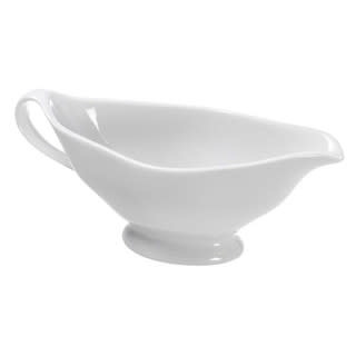 - This footed sauce / gravy boat is made of glazed porcelain making it highly resistant to scratches and chipping. The handle allows for intuitive handling and pouring, while a narrow spout delivers gravies and sauces neatly. The sauce boat retains heat to help keep gravy warm while being served at the table.