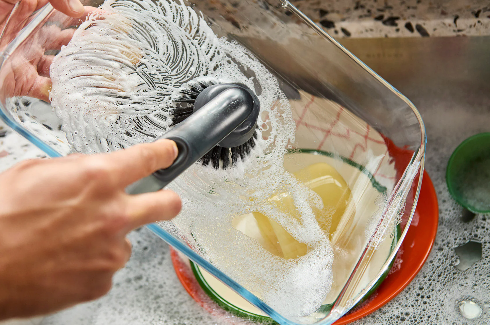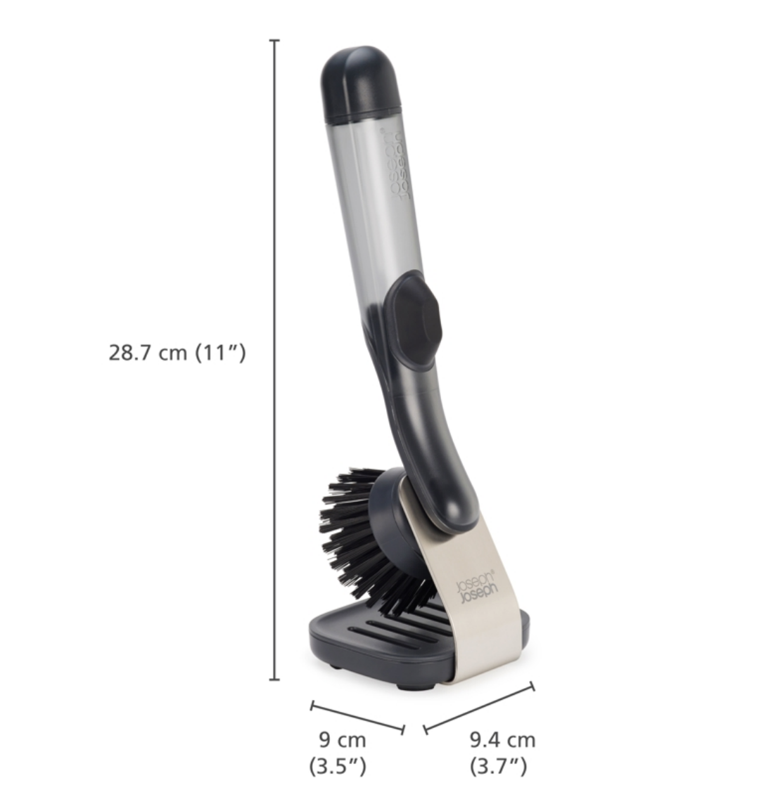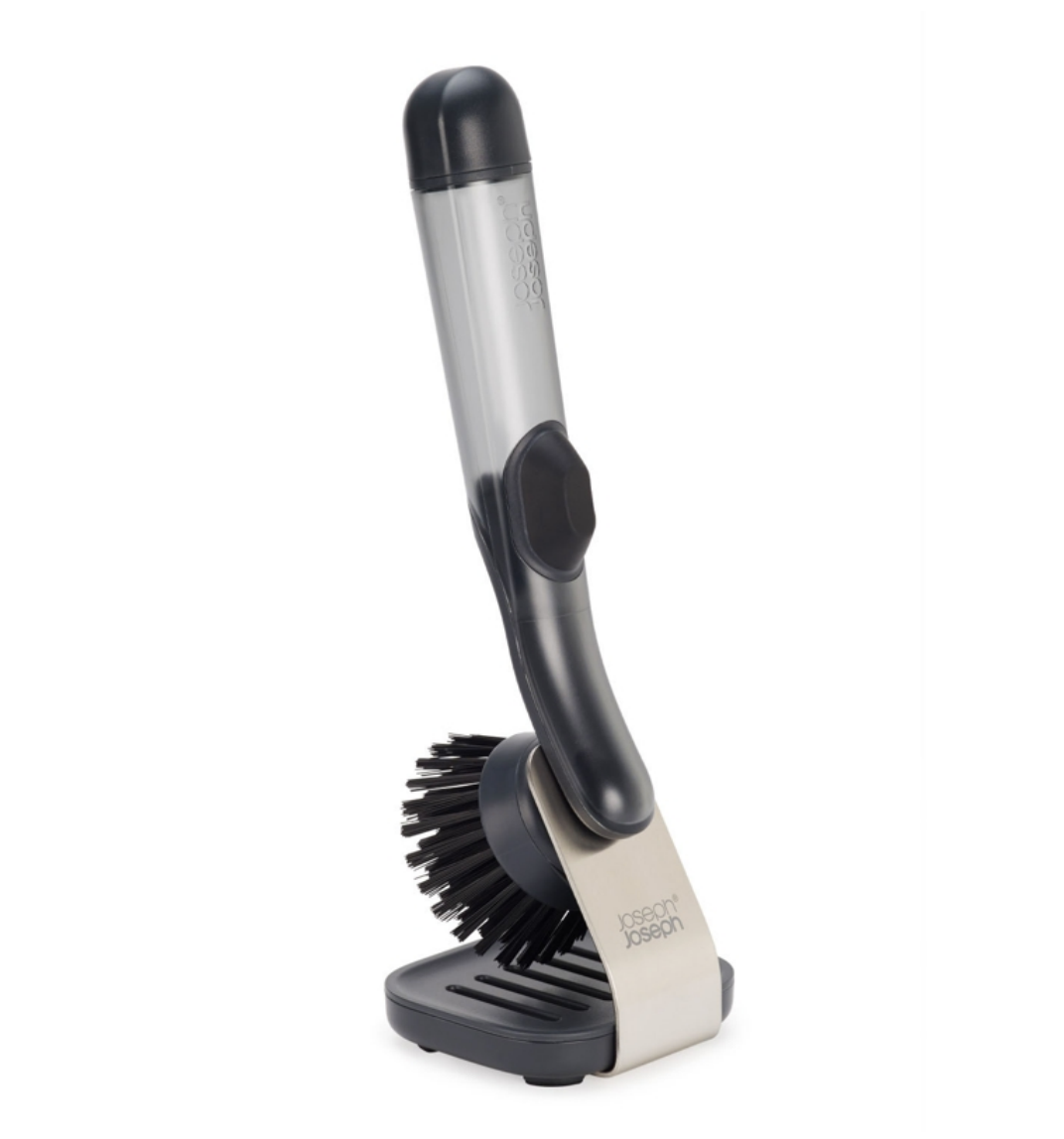 Featuring durable bristles and a refillable soap dispenser, this dish brush includes a stainless-steel stand with a drip tray to keep your sink area tidy.  Read more