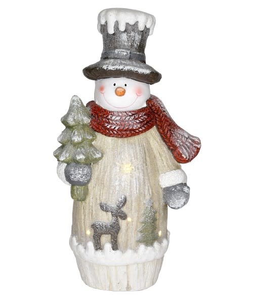 LED White winter Santa holds a gift, Coat is illuminated with large LED snowflakes. Can be used under a covered porch as a door greeter or inside for holiday décor. Read more