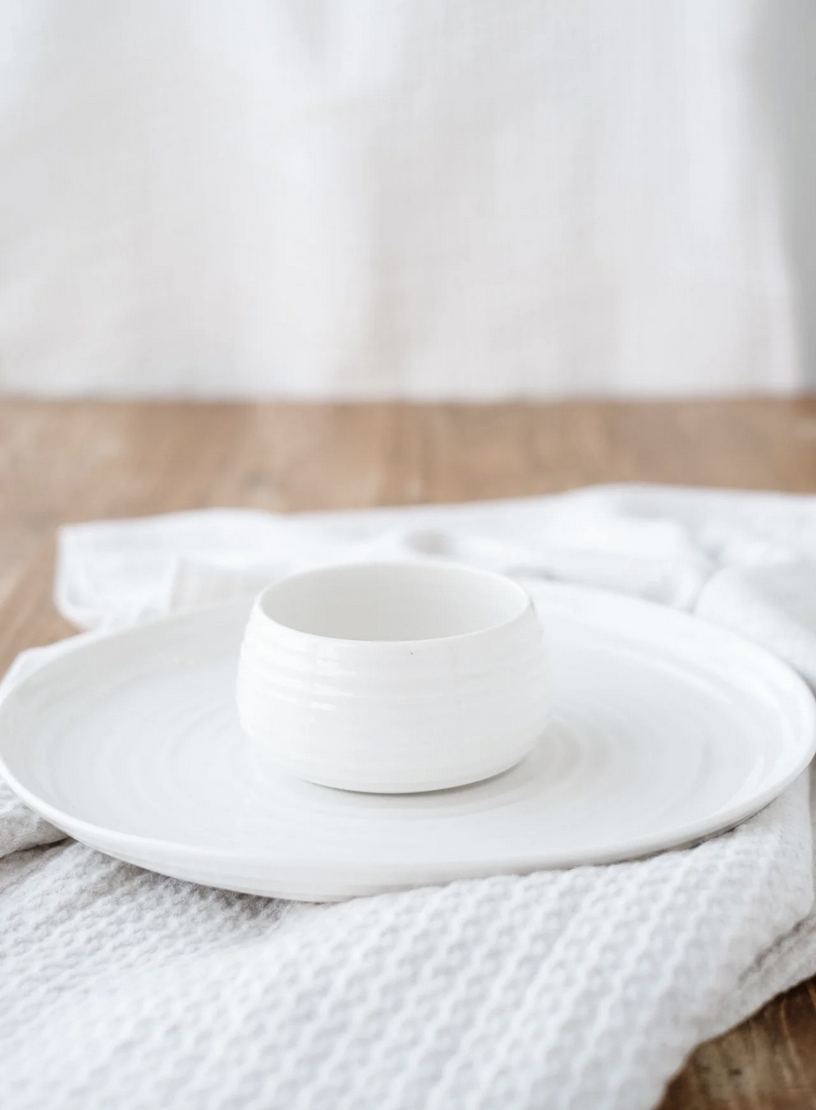 Add a touch of elegance to your parties with this lovely dipping dish and platter from Sophie Conran. Each piece can also be used separately, so they are perfect for any occasion whether it’s sharing with family, a fun starter dish with friends or part of a spread. Porcelain. Microwave, oven, dishwasher and freezer safe. Platter is 30 cm diameter, dish is 12 cm diameter.