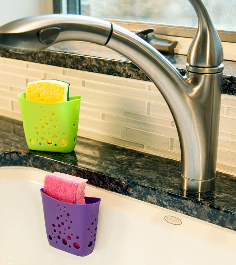 Keeps countertops neat & tidy by providing a home for your sponge.
