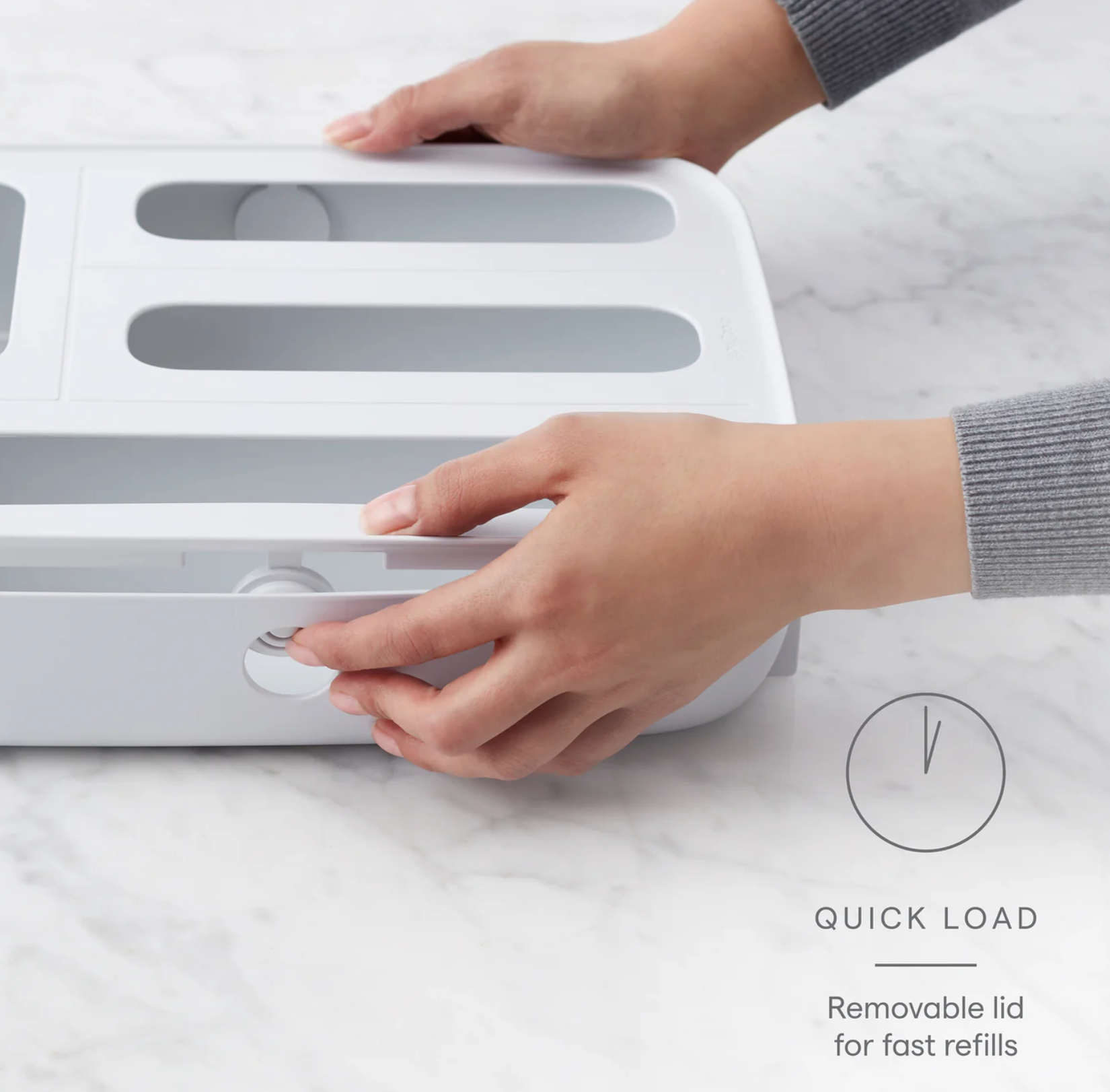 - Top lid is removable for quick loading of baggies so you can ditch the boxesÂ