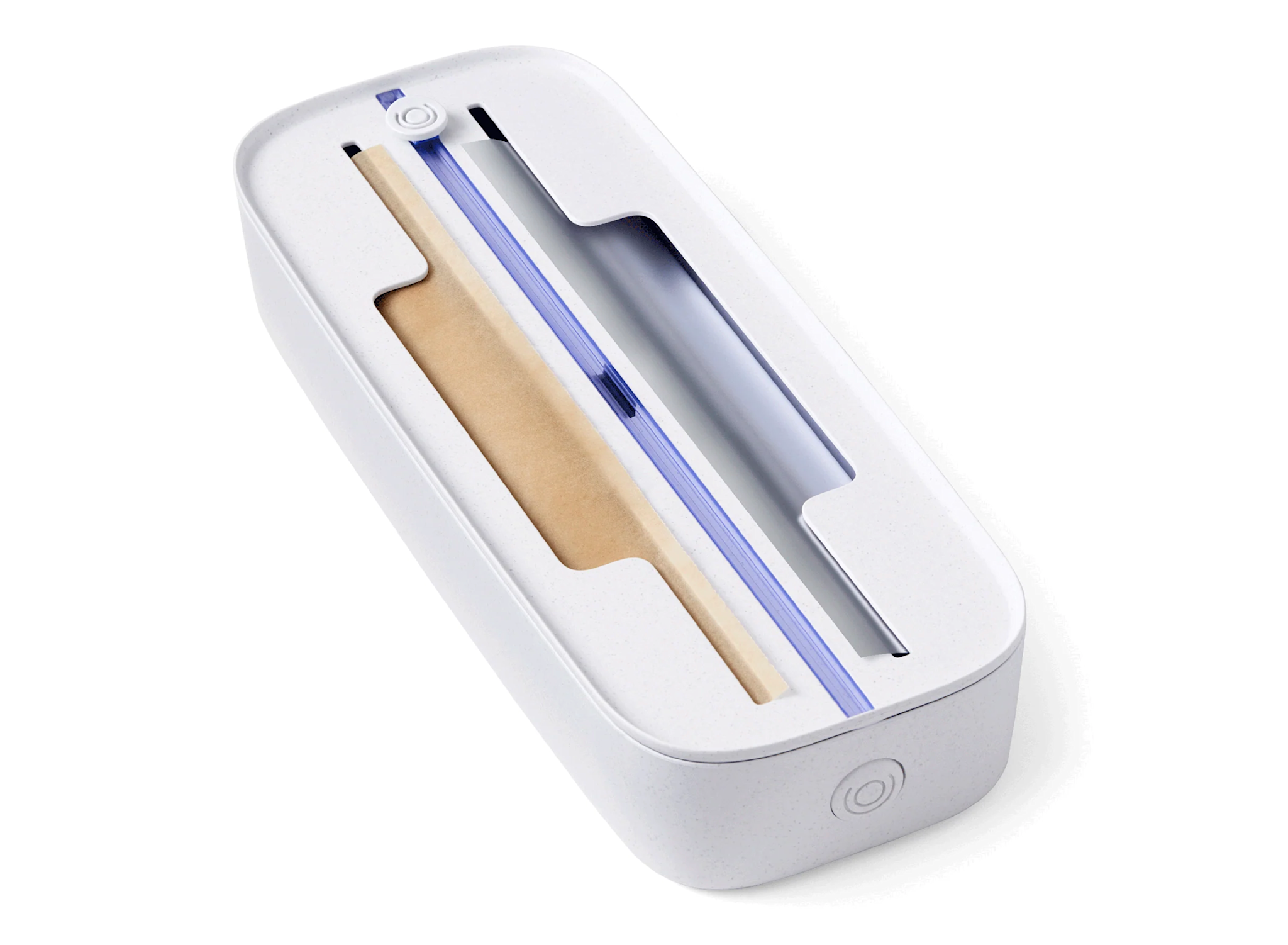 - Secure wrap, with two fingers, on both sides of the cutter. While holding wrap tight, slide the cutting blade across the surface to cut.