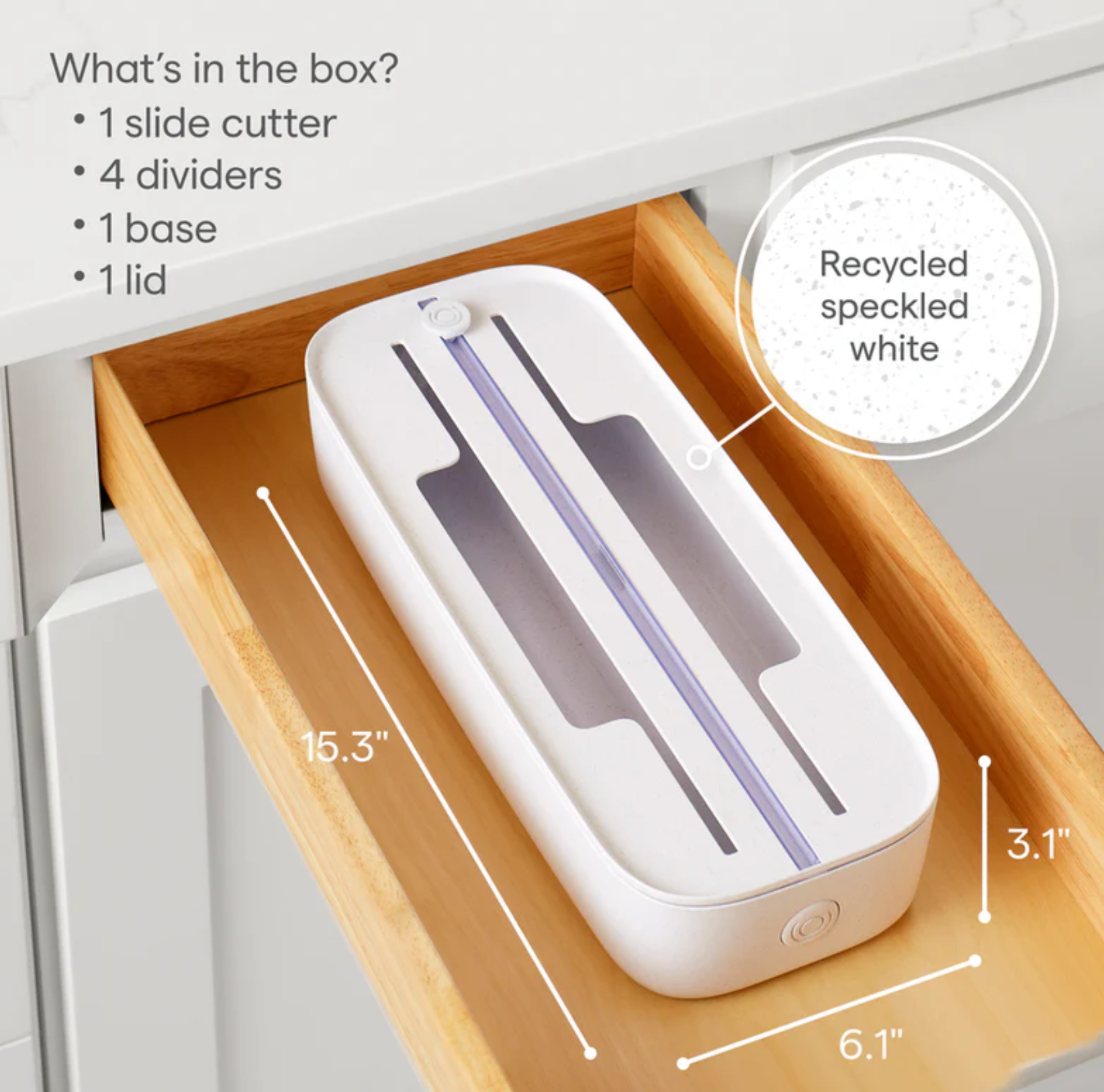 - Holds two 9”-13” rolls of foil, plastic wrap, parchment or wax paper; will NOT fit bulk-sized rolls or Glad® Press’n Seal® wrap