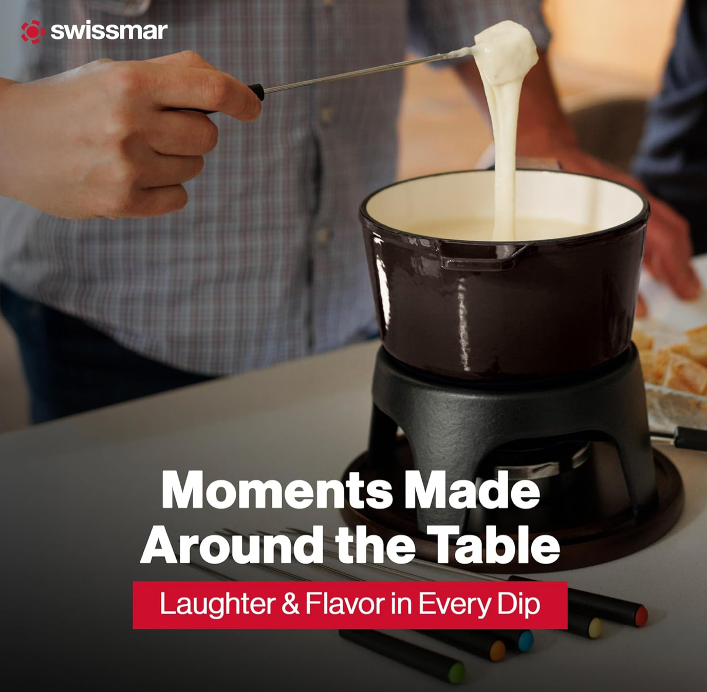 Swissmar Cast Iron Fondues offer the utmost in versatility. In addition to their décor savvy colour pallet, they are ideal for meat, cheese AND chocolate fondue. Cast iron pots provide even heat distribution, making them ideal for cooking at both high and low temperatures - without hot spots.
