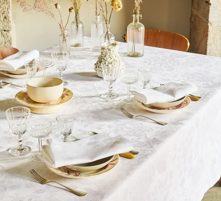 This fabric is made from cotton - linen blend and it lays nicely on the table with its effortless look.