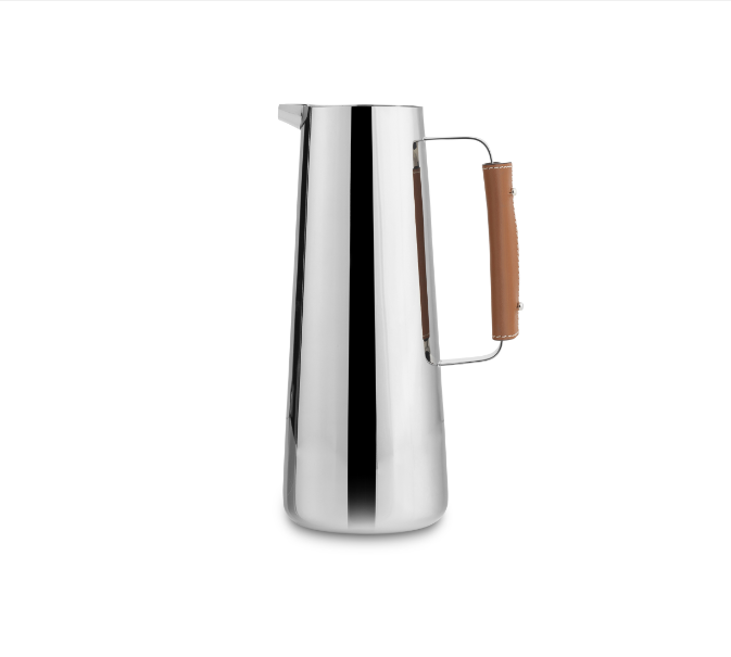 A sleek and modern stainless steel barware collection, Tahoe blends high shine and rich brown leather for a strikingly refined design. With a leather-wrapped handle, the Tahoe Pitcher is an entertaining essential, perfect for serving guests water, juice, Read more