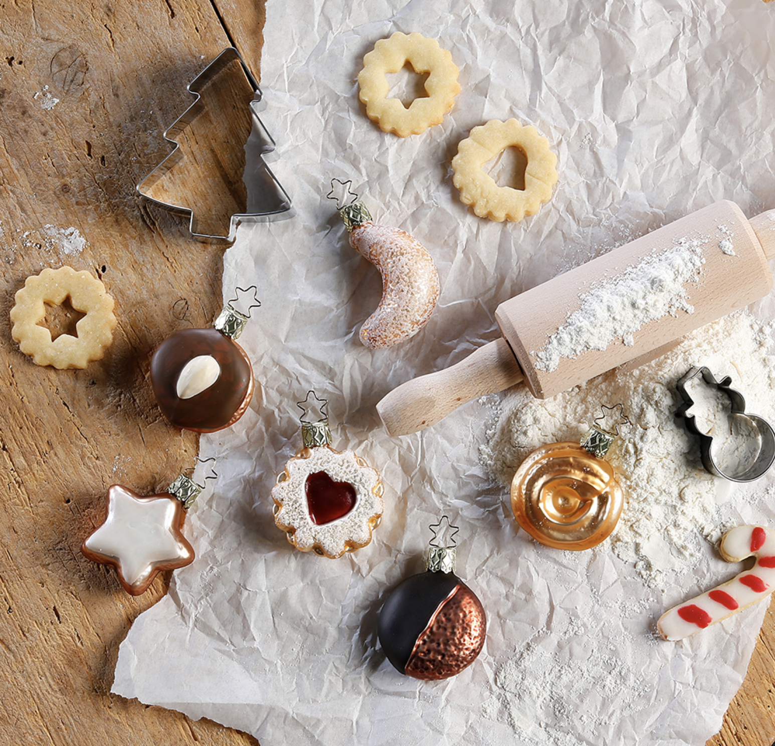 This unique glass Christmas ornament has been lovingly handcrafted by the talented Inge-Glas artisans in Neustadt near Coburg in Northern Bavaria using centuries-old glassblowing techniques. Terrace Cookie was mouth-blown with clear crystal glass, coated inside with a layer of fine sterling silver, and hand painted using only the finest lead-free paints, glitters, and decorative materials.