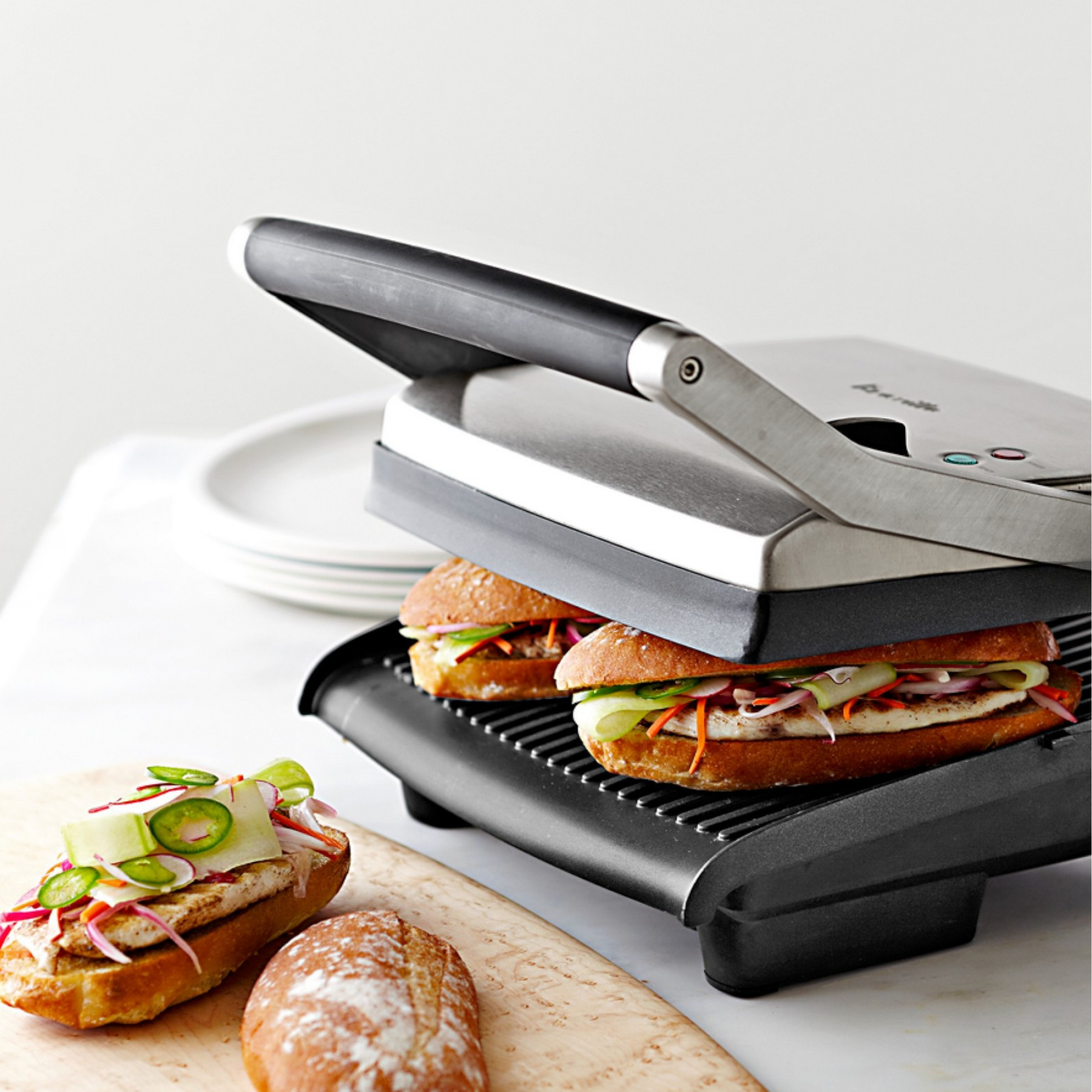 - Lower settings reduce the weight on more delicate foods and also prevent toppings from being pressed out of sandwiches.