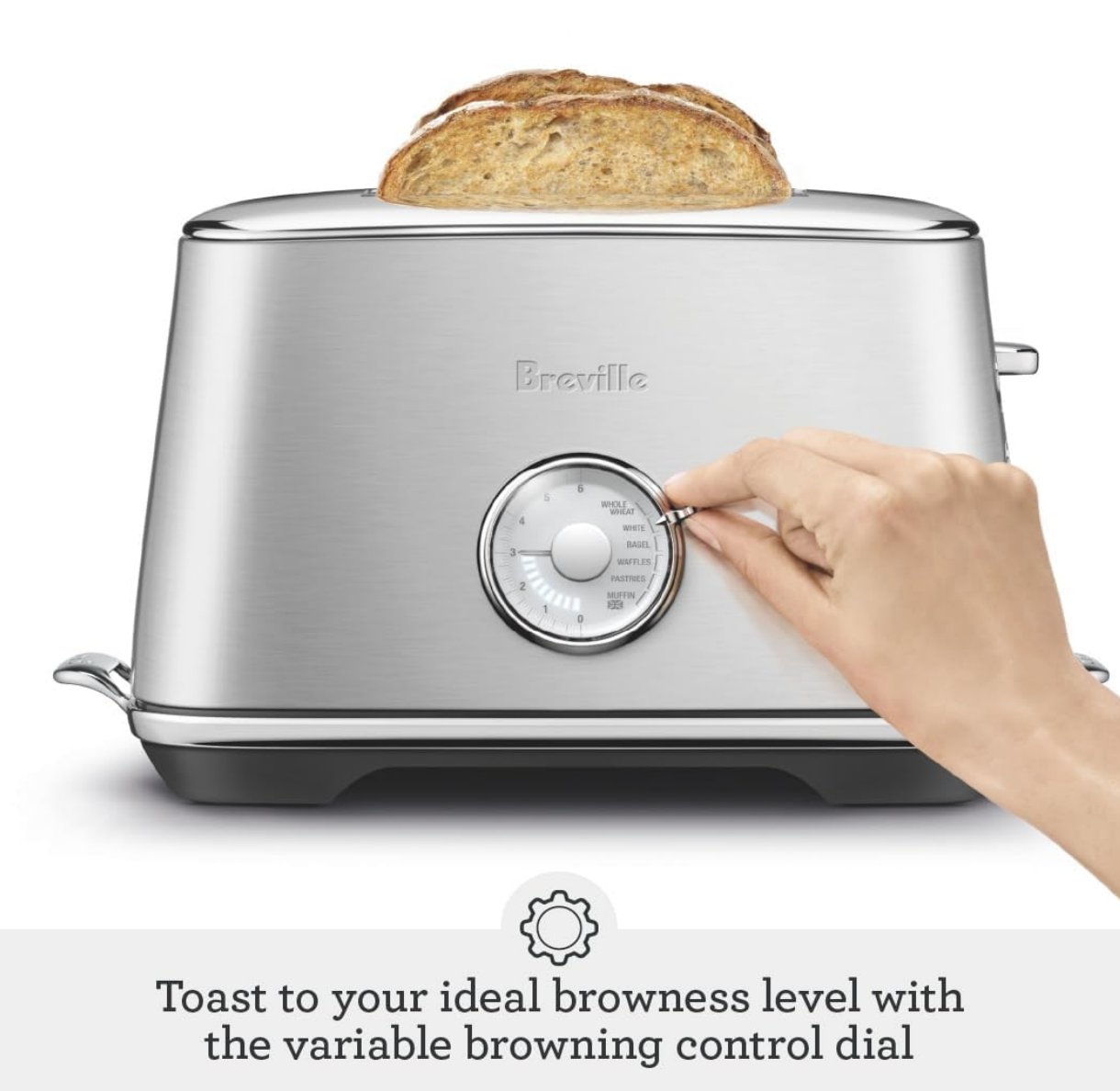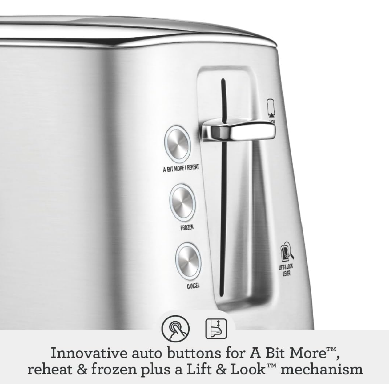 The Toast Select Luxe adjusts the toasting time for each type of bread. 'Lift & Look' to check if it's done. Press 'A Bit More' and to give it just that… a little bit more. Follow toasting progress with the LED countdown indicator. Crafted with brushed st Read more