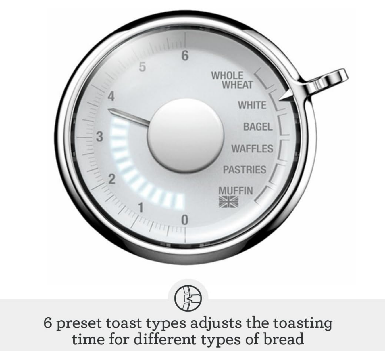Toast to your ideal brownness level while the LED indicates your browning progress. One-Touch 'A Bit More' and 'Lift & Look' functions are derived directly from your feedback and makes for flawless toasting.