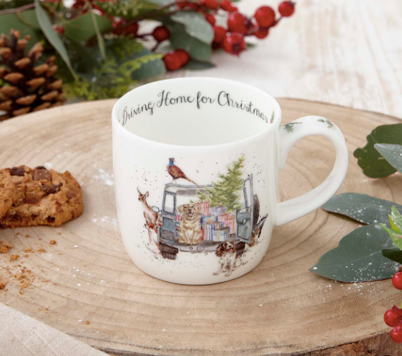 This fine bone china mug from the Wrendale Designs collection captures the heartwarming anticipation of the festive season. Featuring a colorful illustration from artist Hannah Dale, the mug depicts a joyous scene of a motley crew of woodland animals gathered around the back of a car overflowing with beautifully wrapped gifts and a Christmas tree. The words ‘Driving Home for Christmas’ feature on the inside of the mug for an added special touch. Treat yourself or an animal-loving friend for Christmas.